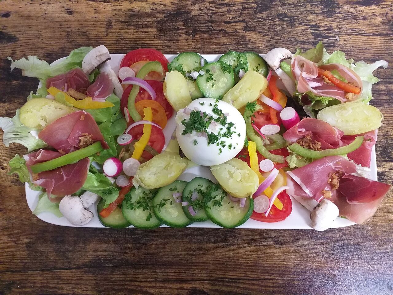 Laissez-vous tenter par notre délicieuse cuisine française. Une cuisine faite maison et des plats régionaux variés vous attendent. Savourez des boissons alcoolisées ou une bière rafraîchissante ainsi que des tapas particulièrement délicieuses ou des fromages. L’après-midi, nombre d’entre nous aiment déguster les gâteaux préparés avec amour et les fruits frais. Nous serions heureux de vous accueillir pour un déjeuner ou un dîner dans une atmosphère sublime !